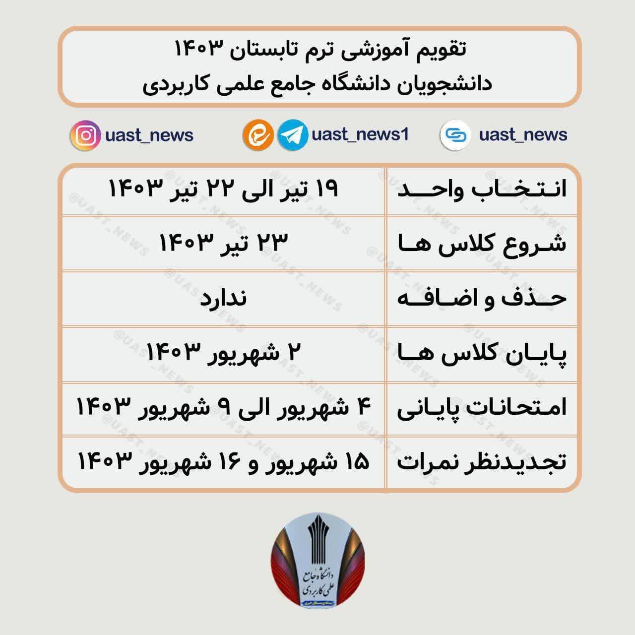 ✳️ قابل توجه دانشجویان گرامی ترم آخر،جهت اخذ واحدهای تخصصی در ترم تابستان میبایست ضمن تکمیل فرم شورای آموزشی،درخواست خود را تاریخ ۱۶ تیرماه به واحد آموزش ارائه نمایند.
