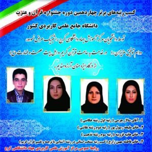 کسب رتبه های برتر چهاردهمین جشنواره قرآن و عترت دانشگاه جامع علمی کاربردی کشور توسط دانشجویان جهاد دانشگاهی کرج