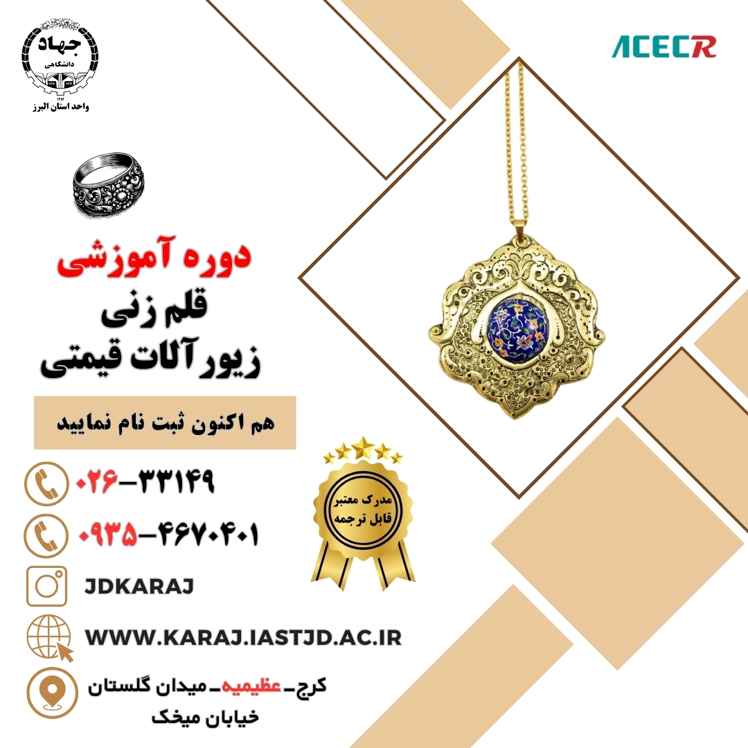 دوره آموزشی قلمزنی زیورآلات قیمتی | مرکز آموزشهای تخصصی جهاددانشگاهی عظیمیه
