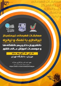 به اطلاع می رساند مسابقات قهرمانی غیرمتمرکز تیراندازی تفنگ و تپانچه دانشجویان دختر و پسر دانشگاه ها و موسسات آموزش عالی کشور ۲۲ لغایت ۲۶ آبان ماه سال جاری به میزبانی دانشگاه تهران برگزار می گردد.