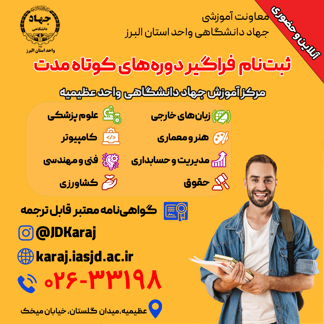 با توجه به نیازهای جامعه و الزامات بازار کار، مرکز آموزشی تخصصی جهاددانشگاهی عظیمیه دورههای تخصصی و کاربردی خود را طراحی و ارائه مینماید. این دورهها با هدف ارتقای مهارتهای عملی و توانمندسازی شما در محیط کاری تدوین شدهاند و فرصت مناسبی برای کسب دانش و تجربه کاربردی فراهم میآورند.