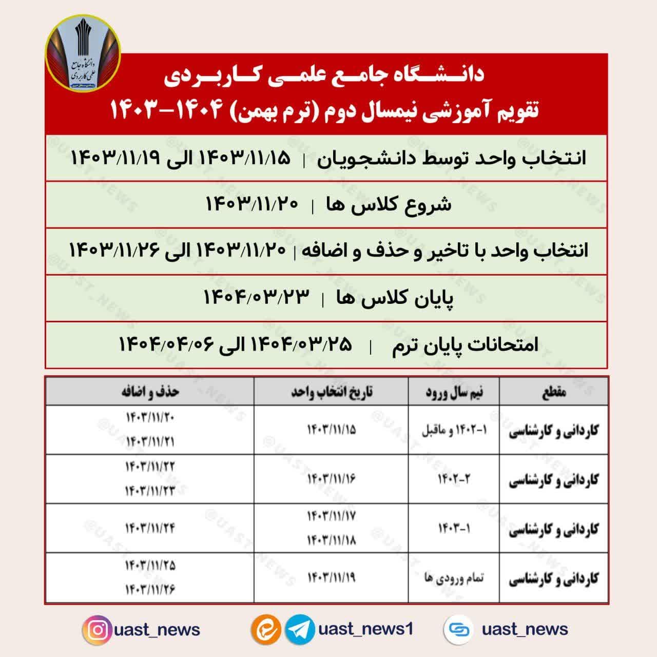 ✅ توجه: پیگیری و انتخاب واحد سایر دروس در مراکز دیگر، بر عهده شخص دانشجو است و مرکز تنها در قبال دروس اعلامشده در این اطلاعیه مسئولیت دارد.